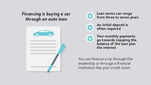 Understanding Vehicle Financing Finance or lease a vehicle only when you can afford to take on a new obligation. Check the overall costs for the purchase or lease. Consider the monthly payment Term 3 Years – 36 months 5 Years – 60 Months Purchase Price $31,000 $31,000 ... Document Retrieval